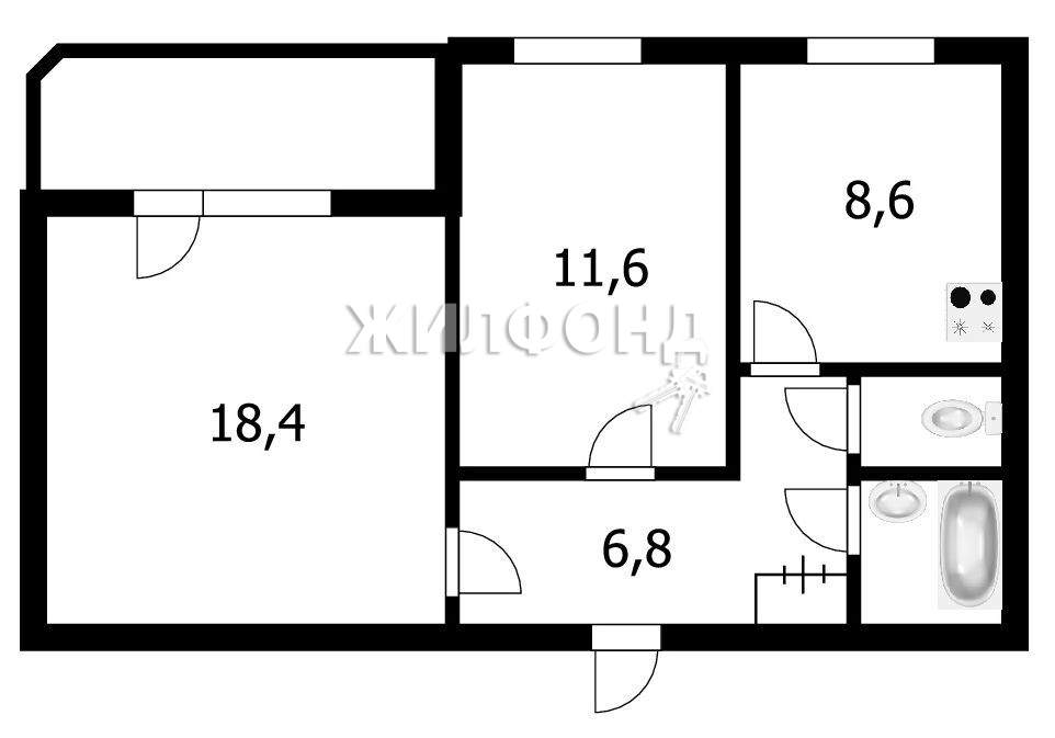 2 комн. квартира по ул. Лазурная. Общей площадью: 49.40 кв.м, продажа квартир Новосибирск, N 85235263
