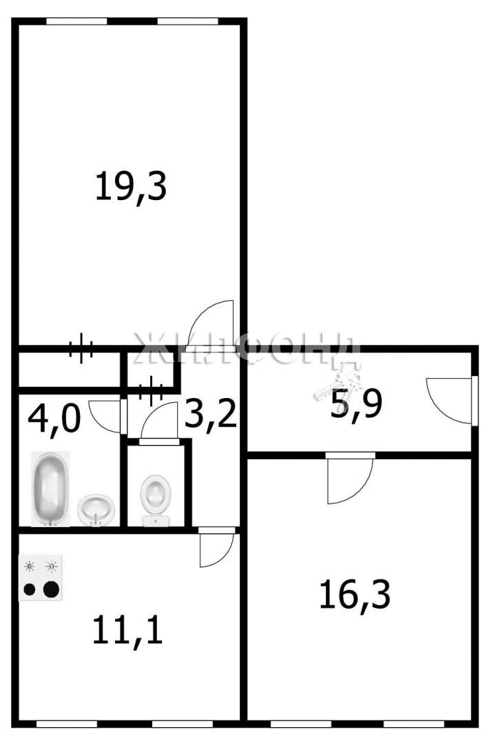 2 комн. квартира по ул. Троллейная. Общей площадью: 62.30 кв.м.