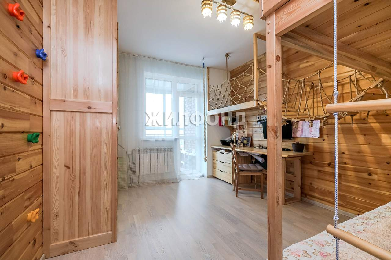 В квартире выполнен современный и максимально экологичный ремонт с использованием европейских отделочных материалов (так как делался для себя и своих детей) . Нет токсичных натяжных потолков (покраска) , на полу - паркет. Стены в детской - дерево, спальня - покраска. Дорогая сантехника, кафель, межкомнатные двери. Вся мебель в детской сделана из натурального дерева! (Двухуровневая кровать, заканчивающаяся игровым домом, огромный встроенный трехдверный шкаф, стол с тумбой и балкончик над ним, подвесной мостик и спортивный комплекс) . Спортивный комплекс включает в себя все необходимое и даже больше: скалодром, веревочная лестница, рукохват на весь потолок, тарзанка, канат, качели , баскетбольное кольцо при этом органично вписывается в комнату , занимая минимум пространства, при этом служит не только спортивным, но и игровым целям.